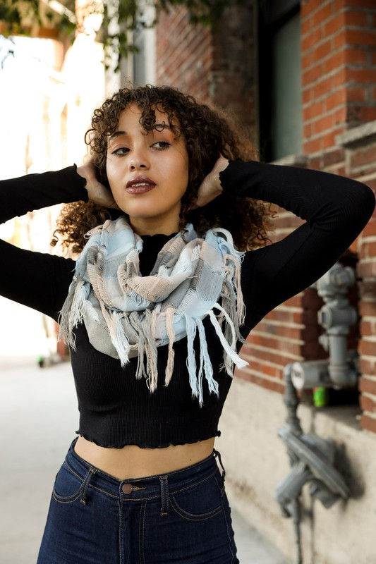Loose Gingham Plaid Tasseled Infinity Scarf