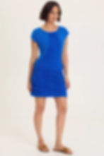 WEARABLES AVIANA STRETCH POPLIN RUCHED MINI DRESS In Honorable Blue