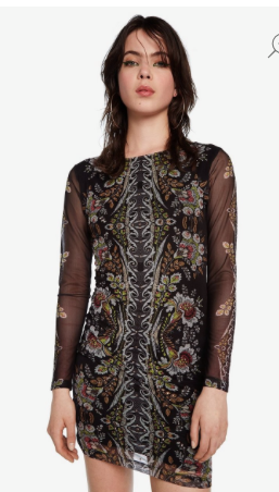 Desigual pattern midi dress with sheer sleeves