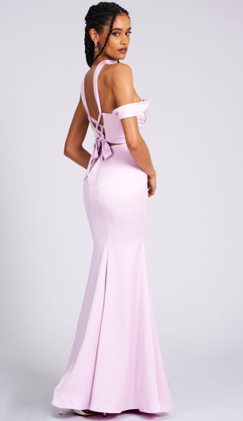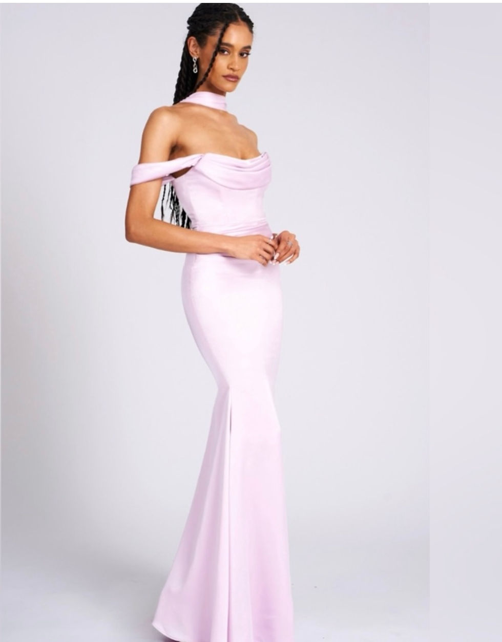 Ivona Mauve Halter Neck Double Duchess Satin Gown
